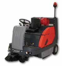 The Apex 58 gives you the option of gas/LPG, diesel or battery power. As a result, all types of indoor and outdoor sweeping jobs are possible. The gas and diesel versions have powerful and consequently quieter 2-cylinder motors – the diesel version is water-cooled. These powerful drives give excellent climbing ability – to be precise, 18 % for the gas, diesel and battery versions. These machines are capable of long run times.Run times are up to 3 hours for the battery version and 10 hours for the gas, diesel and LPG versions. An easily accessible high performance cassettestyle filter system with a filter surface area of 54 sq.ft. ensures clean exhaust air. The flow technology of the vacuum system has been optimized to allow significantly longer operating times between filter changes. The machines also have the particularly effective R^2 S filter cleaning device (patented feature.) Our engineers designed the Apex 58 to ensure that even long shifts do not result in operator fatigue. An ergonomically optimized driving position gives users of widely differing builds a comfortable seat and a perfect view of the working surface. The large wheels can even mount curbs effortlessly and ensure increased driver comfort on uneven surfaces. The large coarse dirt flap, operated from the driver’s seat, allows even large items such as stones or pieces of wood to be picked up. Once the 34 gallon dirt hopper is full, the 60” high-dump hopper makes for easy emptying into larger containers. The hopper can be used to the full capacity because of the lifting power of the high-dump hopper.